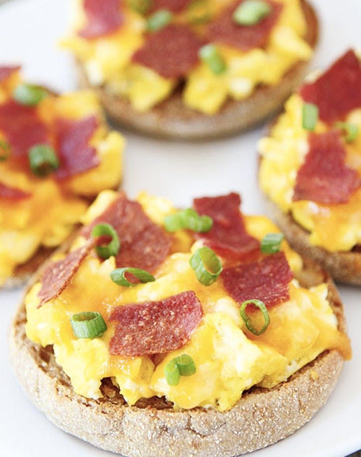Английские маффины можно разрезать вдоль и использовать как закуску с наполнением или основу для бургеров.