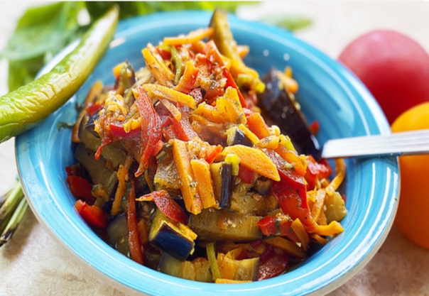 Имейте в виду, что баклажаны являются здесь основным ингредиентом. Помидоры и зеленый перец поддерживают баклажаны.