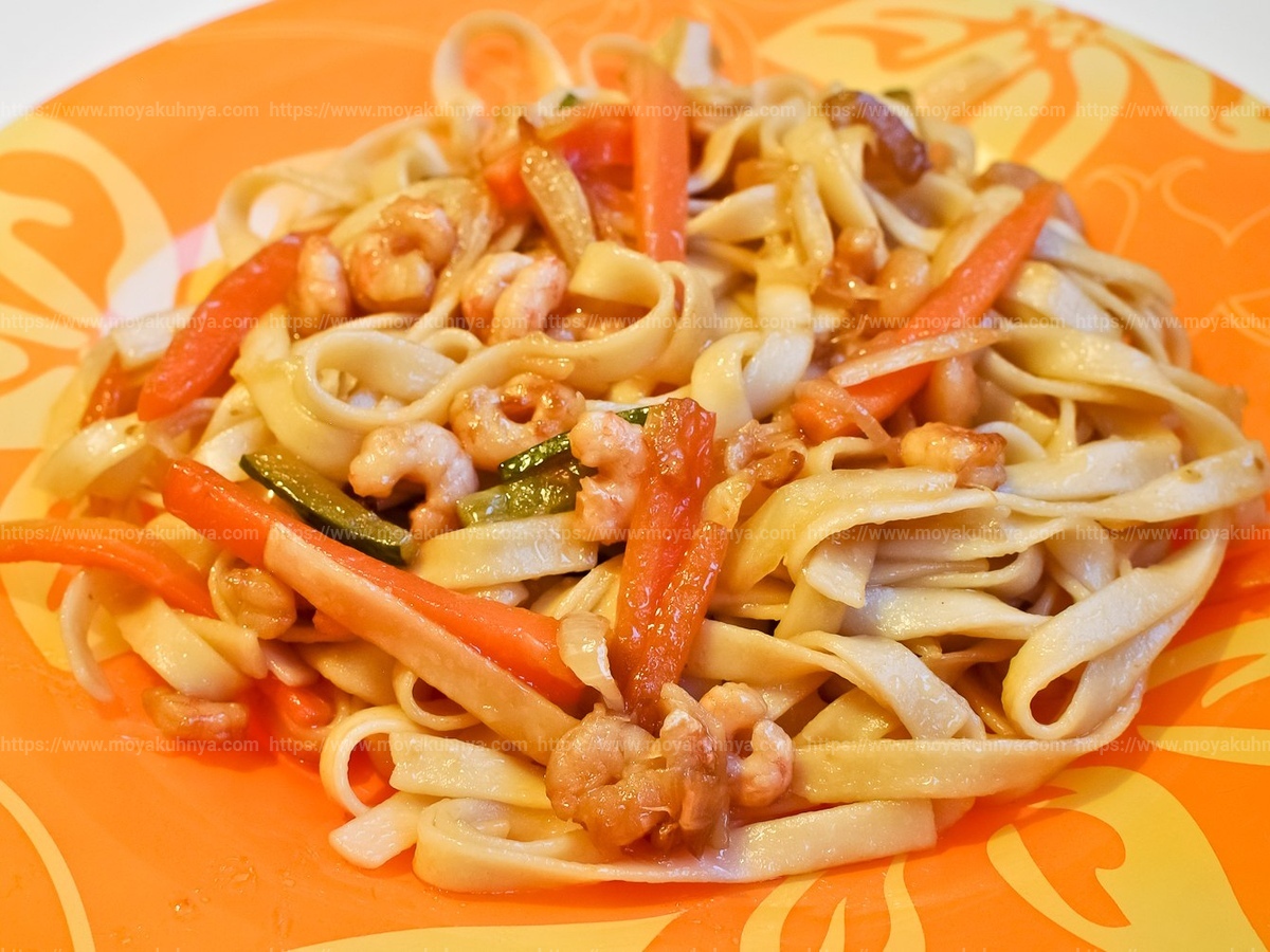 Вкусная лапша с креветками — рецепт, правила приготовления и отзывы