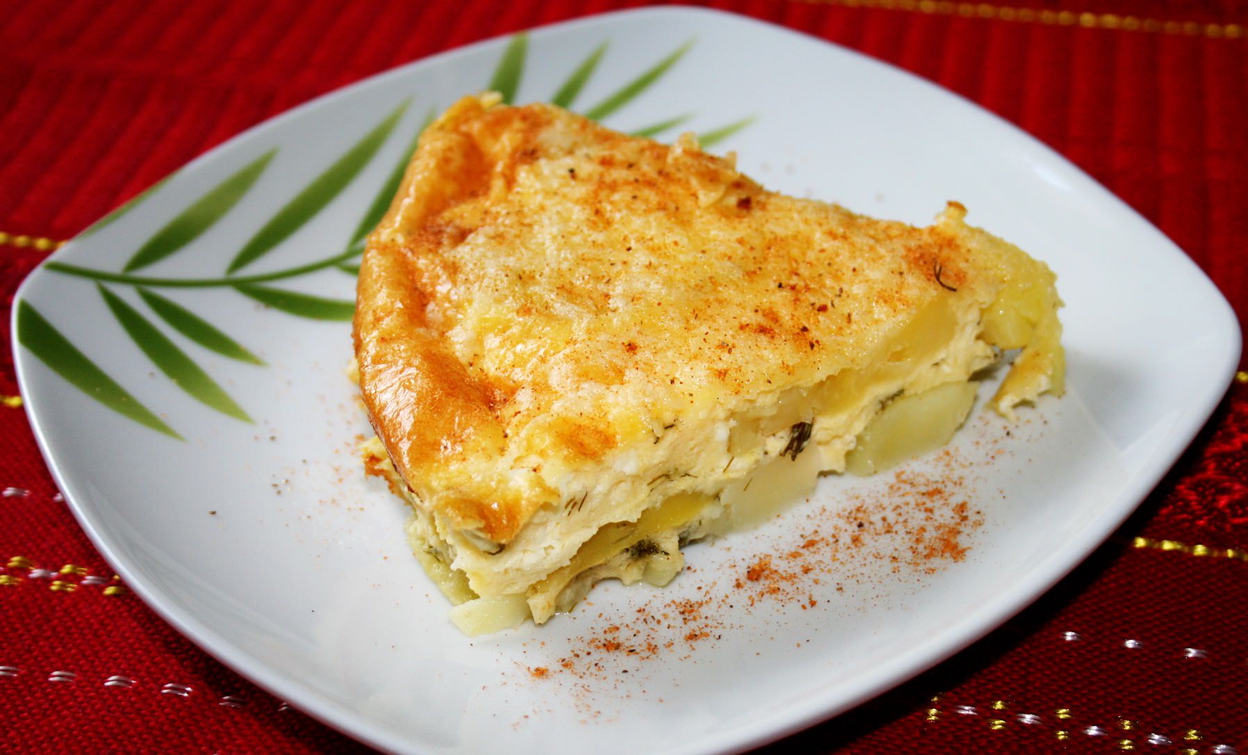 Картофельная запеканка в духовке с жареным луком и яйцом