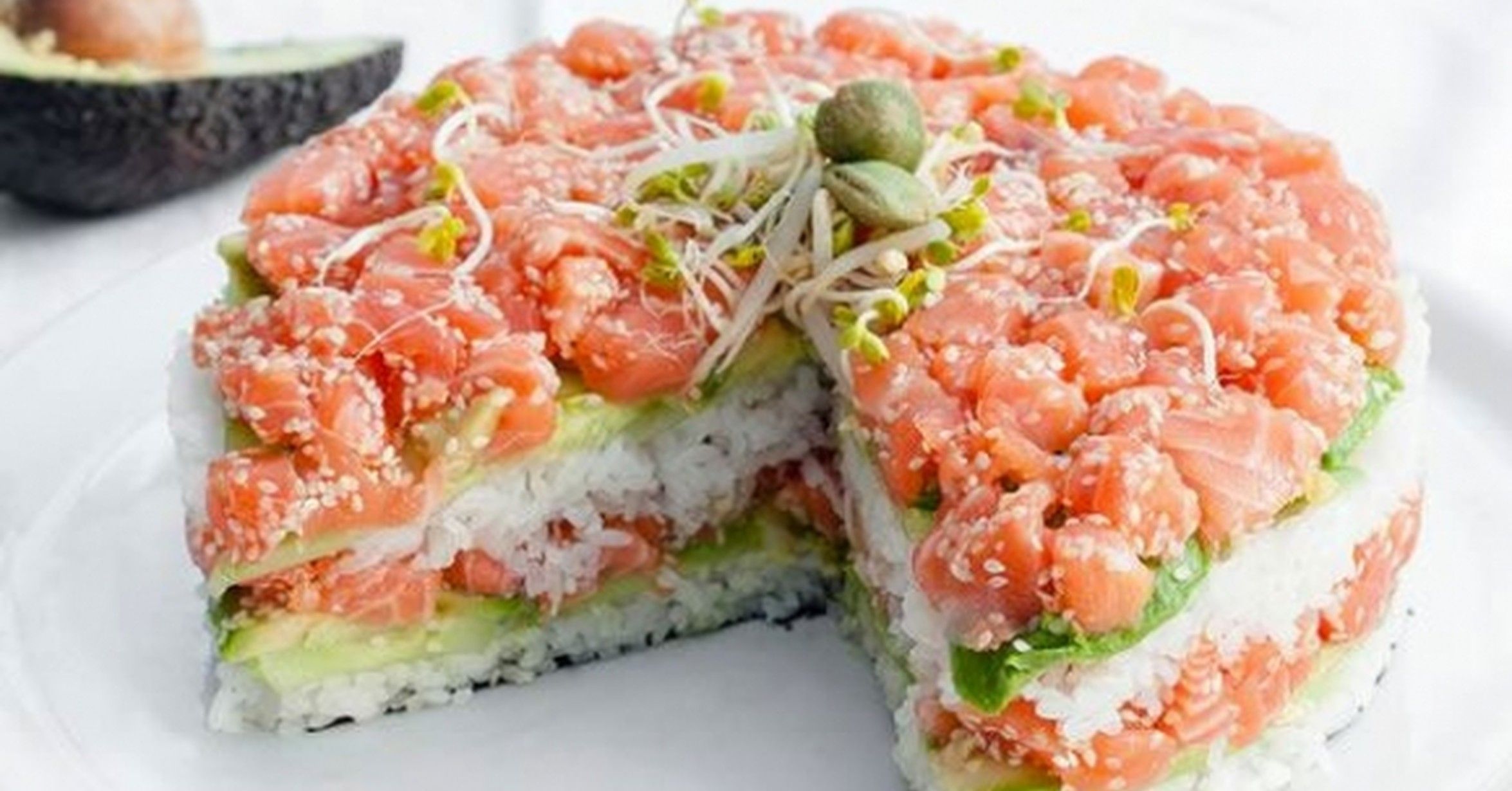 Кто сказал, что торт должен быть сладким? А кто сказал, что суши должны быть порционными? Поскольку нигири-суши — это многослойная смесь риса и морепродуктов, почему бы не превратить их в гигантский пирог вместо маленькой порции. Те из вас, кто следит за тенденциями в еде, возможно, уже видели, как суши-торт распространяется в Интернете. Он сейчас в огне, и все, от Марты Стюарт до французских шеф-поваров, разрабатывают свою версию. Попробуйте приготовить наш суши-торт с лососем и огурцом для особого случая у себя дома.