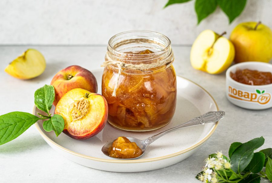 Подготовленные фрукты нарезают кубиками, параллельно кипятят воду. Бланшируйте фрукты в течение 10 минут. Затем плоды соединяют с сахаром и добавляют половину жидкости, оставшейся после бланширования. Варить до мягкости. Время от времени перемешивайте. Разливают по банкам и закатывают.